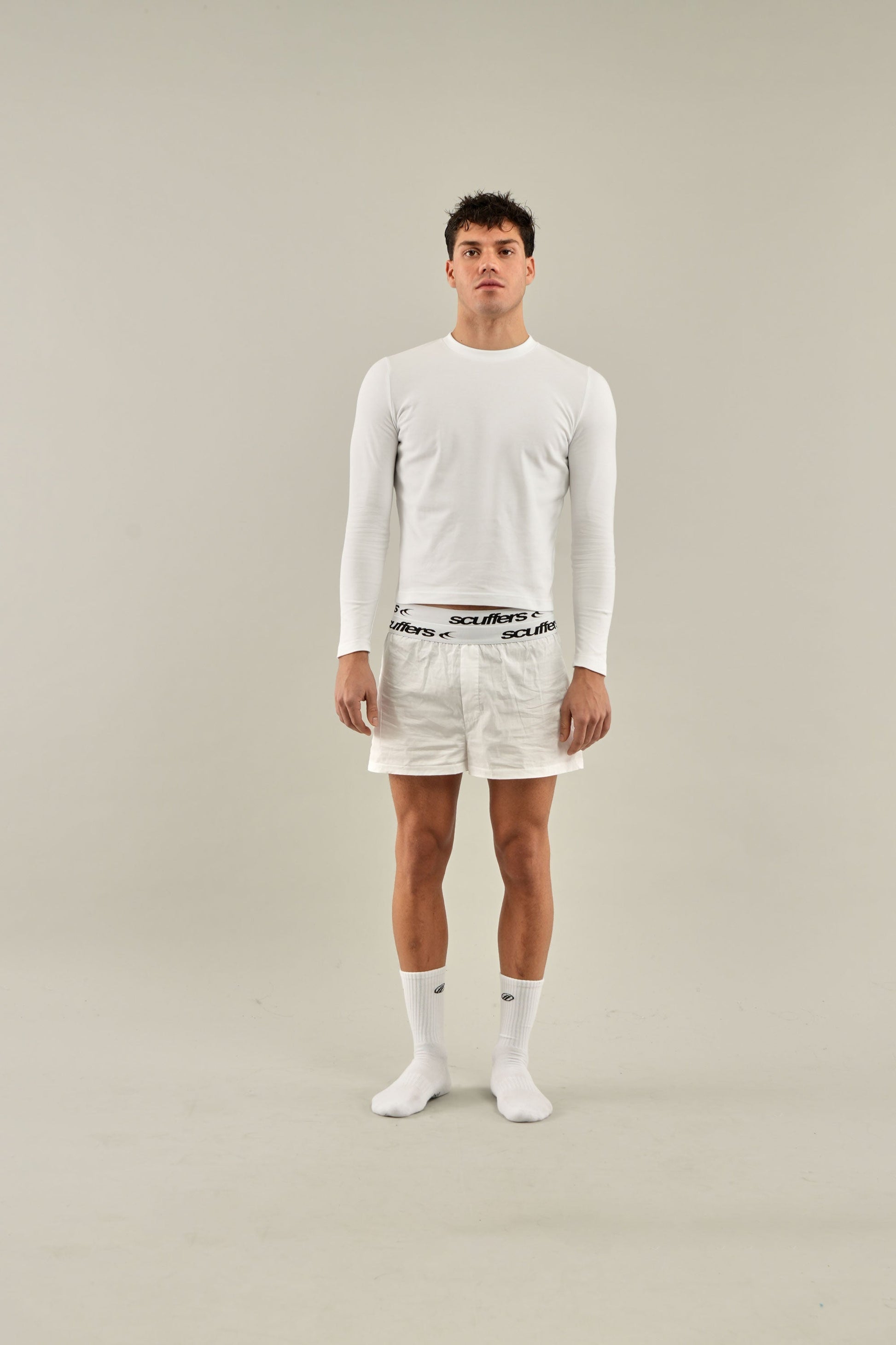 Diese weißen Boxershorts haben einen bequemen Gummibund mit einem sich wiederholenden weißen Scuffers-Logo für einen kontrastierenden Markenauftritt. Sie sind aus leichtem, atmungsaktivem Material gefertigt und bieten so optimalen Tragekomfort im Alltag. Die lockere Passform sorgt für uneingeschränkte Bewegungsfreiheit und macht sie sowohl zum Entspannen als auch für sportliche Aktivitäten geeignet.