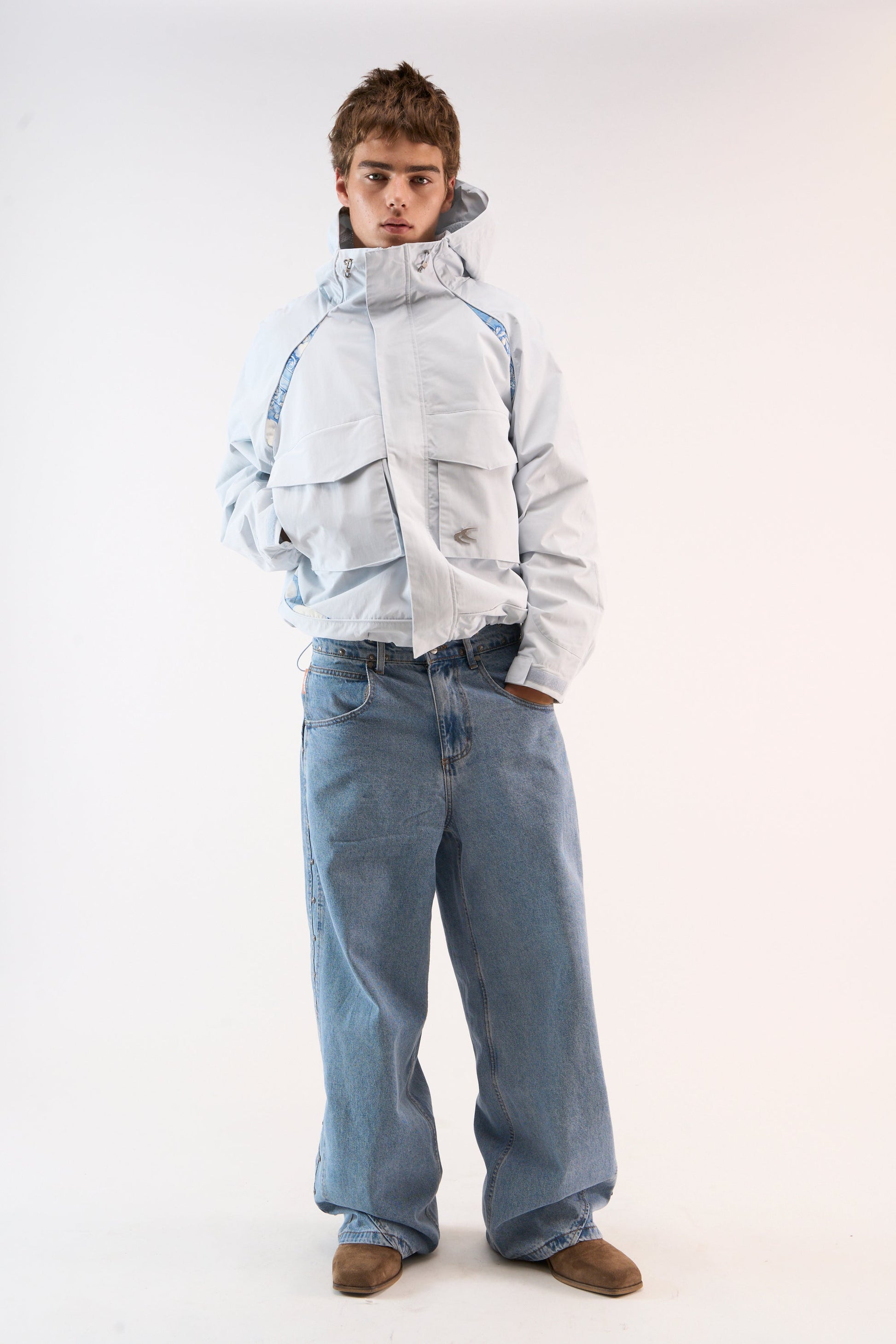 Neue, unverzichtbare hellblaue Windjacke