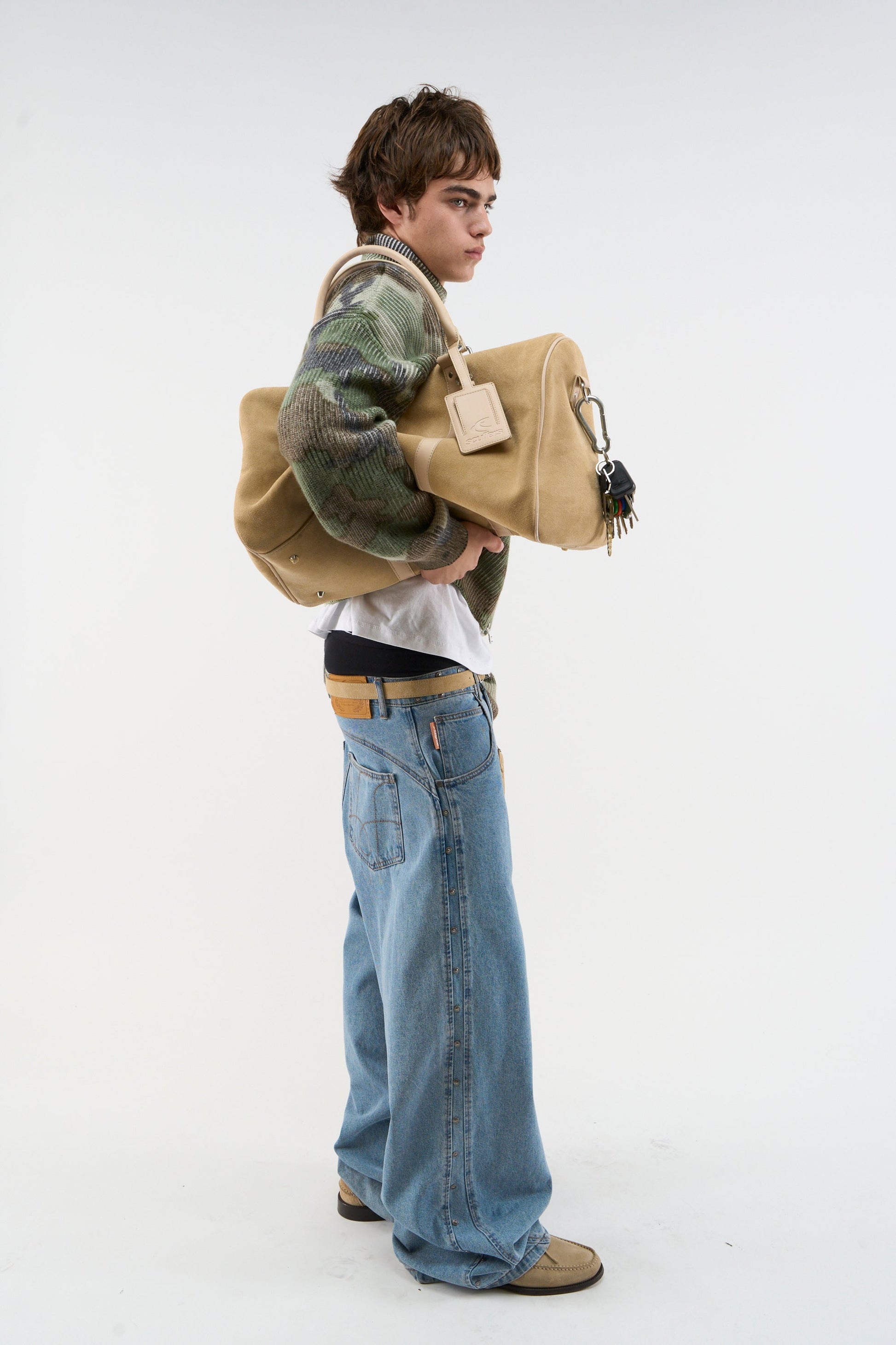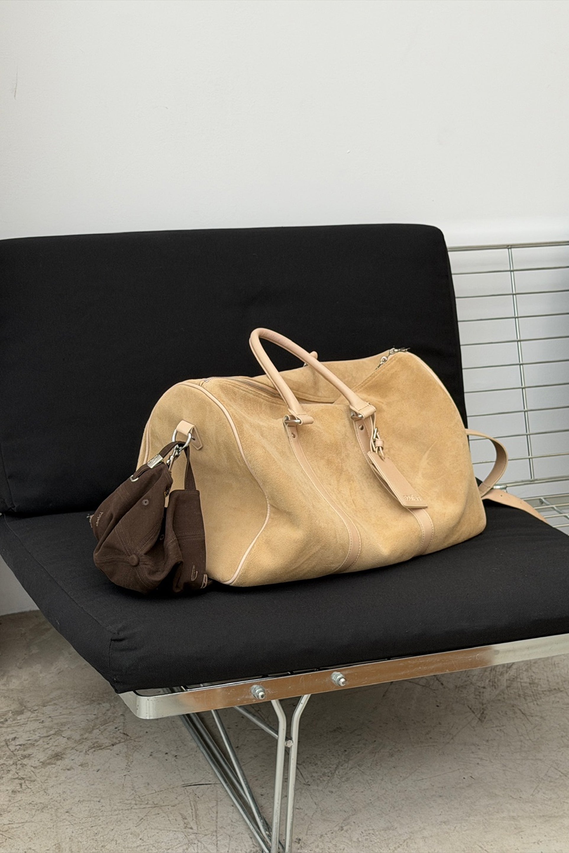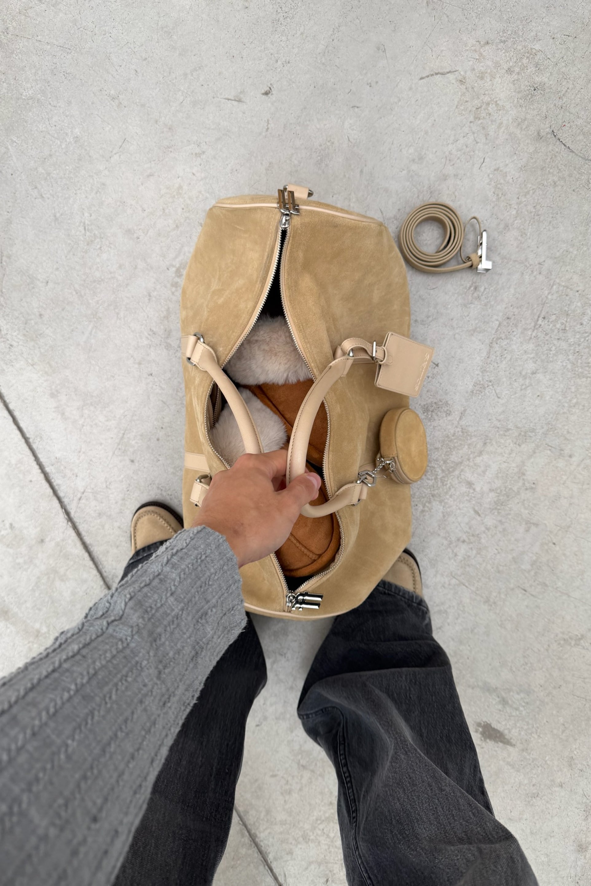 Reisetasche aus Wildleder in Ecru