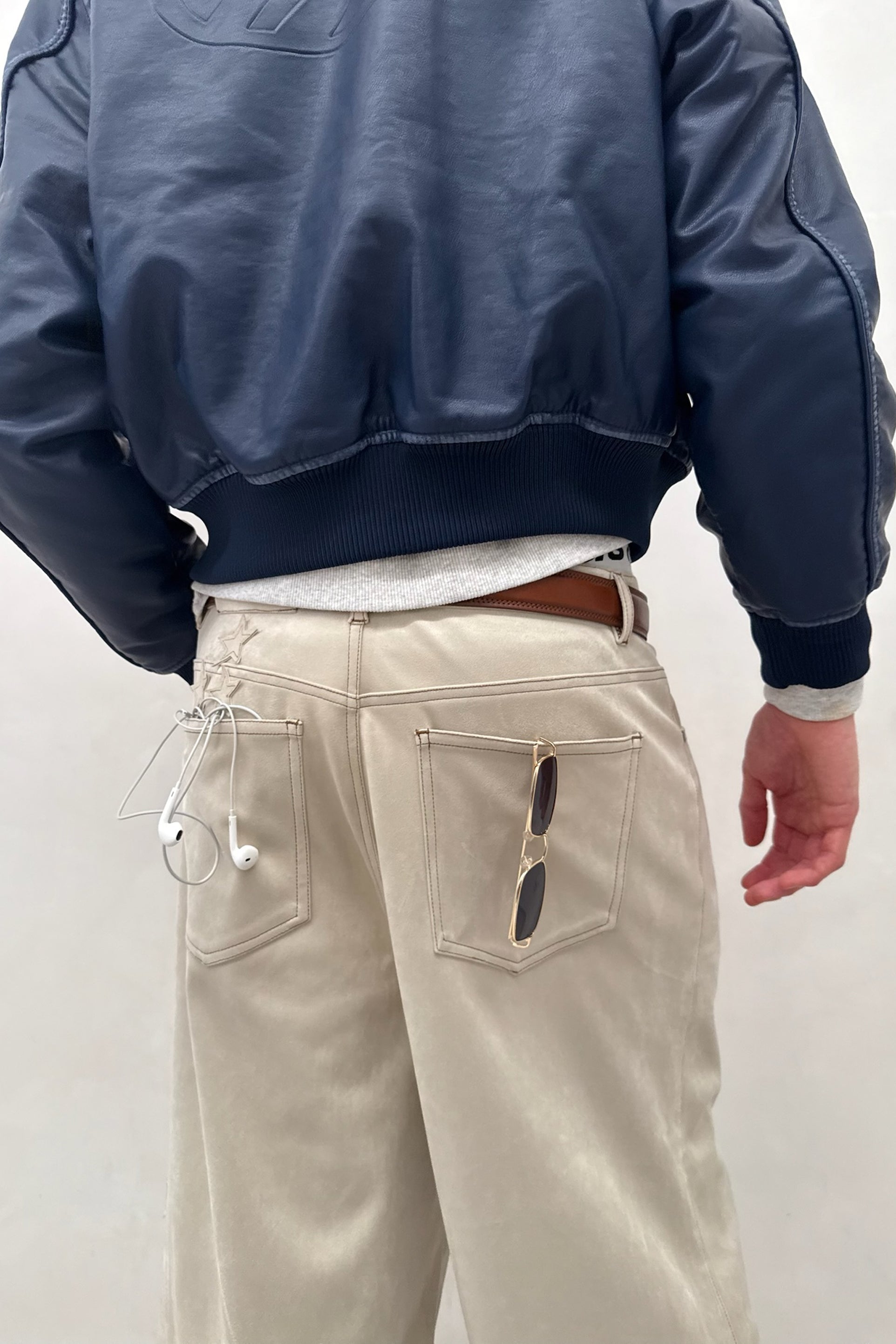 Graue Wildleder-Jumbo-Hose